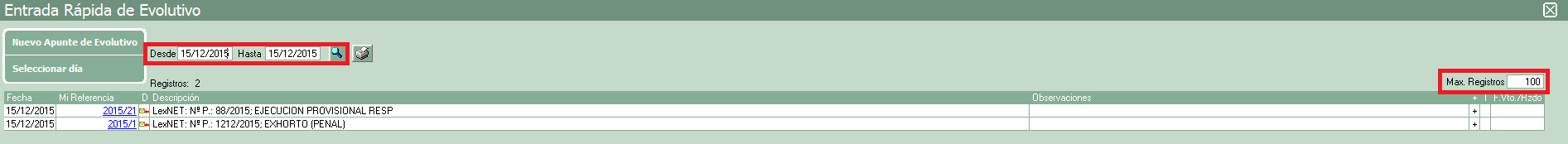 Por ejemplo, nos bajamos el día 2 las notificaciones del día 1 y del día 2, si en la entrada rápida de evolutivo establecemos que solo se muestre el día dos no aparecerán todas las notificaciones que hemos descargado, ya que no se mostrarán las que sean del día 1, al poner desde el día 1 al 2 saldrán todas.