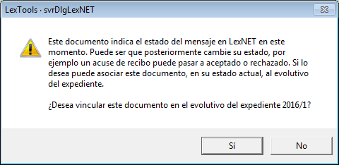 Se abrirá el archivo PDF del histórico y nos preguntará si queremos vincularlo al expediente (la notificación tiene que estar vinculada a un expediente previamente).