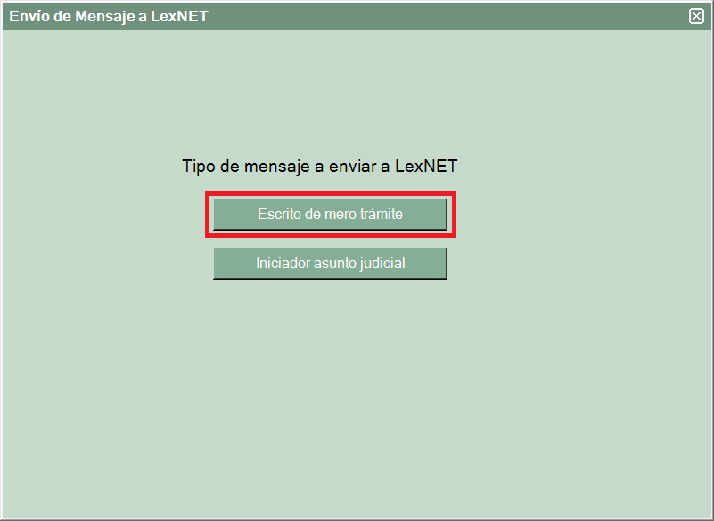 Aparecerá la ventana de conexión con LexNET y después de seleccionar el certificado y poner el pin aparecerá la ventana de envío para seleccionar el tipo.