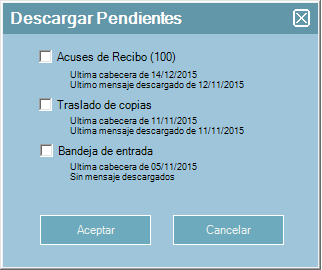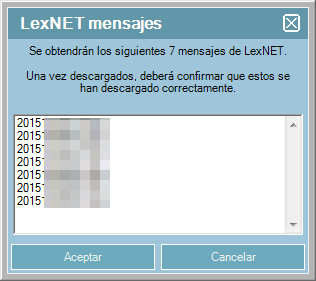 Aparecerá una ventana con el número de mensajes que se van a descargar y un listado con sus respectivos IDs.
